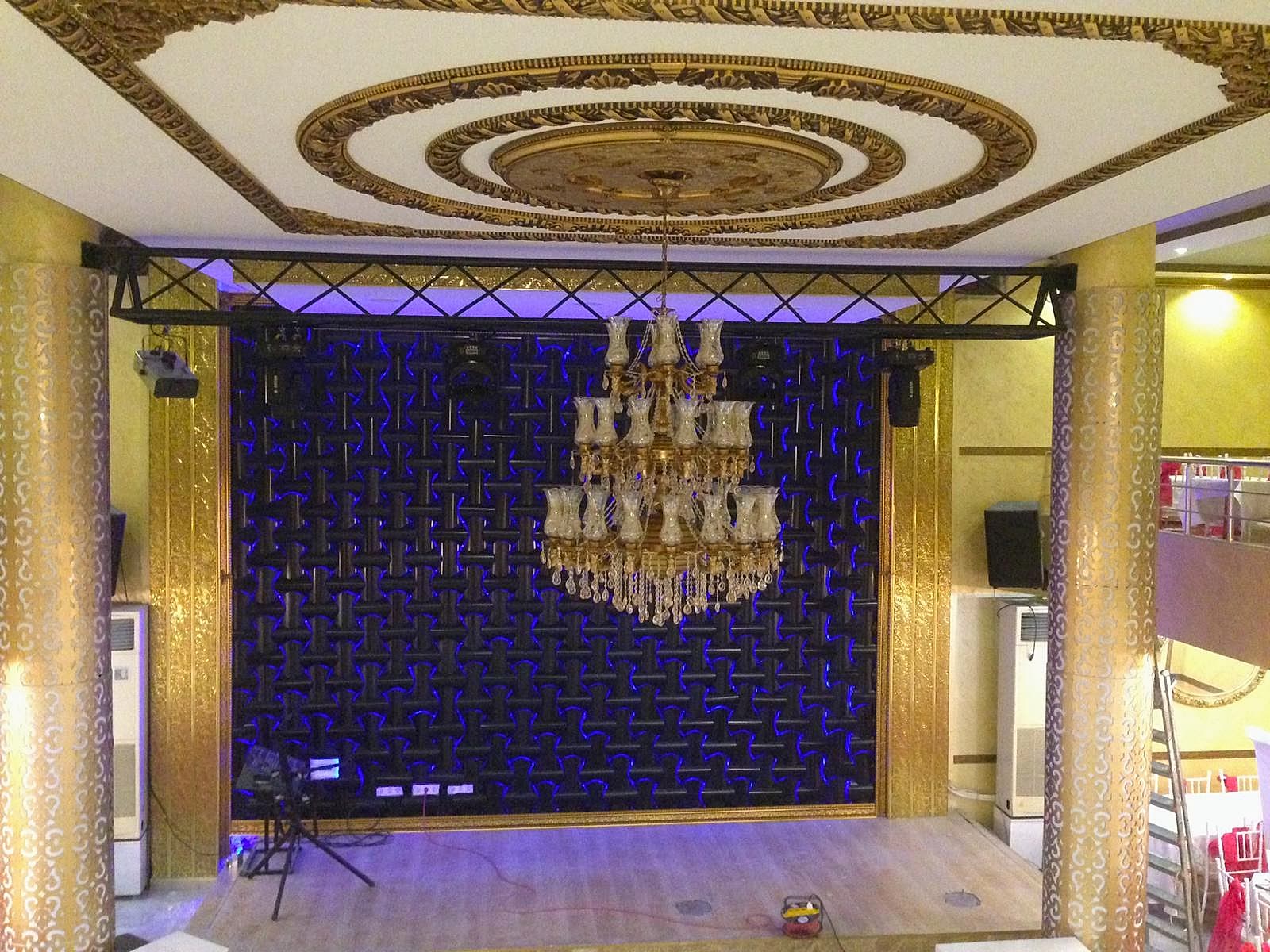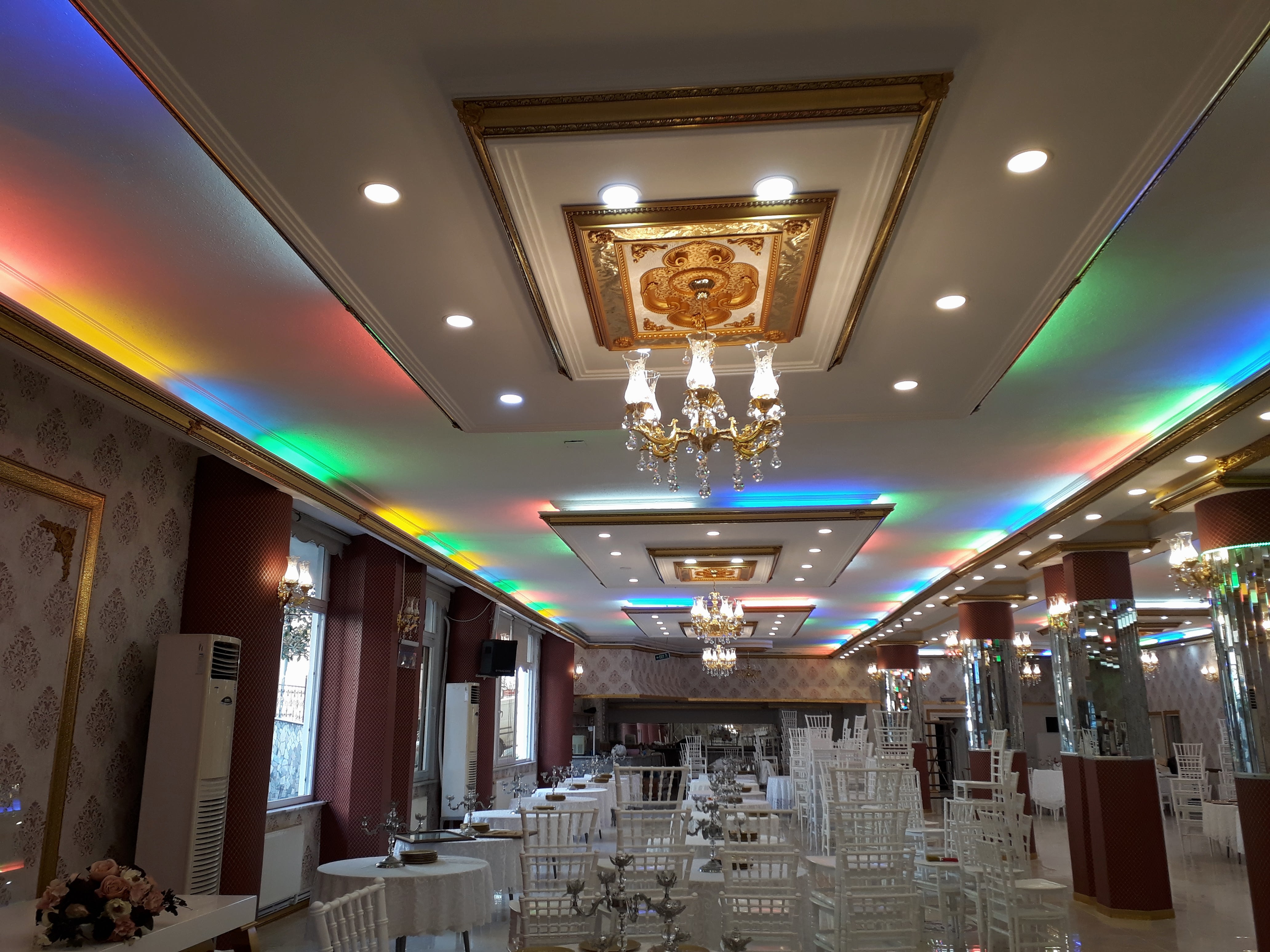 Düğün salonlarının ihtişamını ortaya çıkaran en önemli dekorasyon unsurlarından biri tavan dekorasyon uygulamalarıdır. Tavan dekorasyonun son trendi ise saray tavan uygulamalarıdır. Farklı model ve ebatlara sahip saray tavan modelleri ile düğün salonları sizin için gerçekten bir saraya dönüşmektedir. Saray tavan uygulamasının bu denli rağbet görmesinin sebebi mekanı ihtişamıyla tamamen farklı bir havaya büründürmesidir. İster kına evi, ister hotel balo salonları, isterseniz de düğün salonlarında saray tavanı tercih edebilirsiniz.